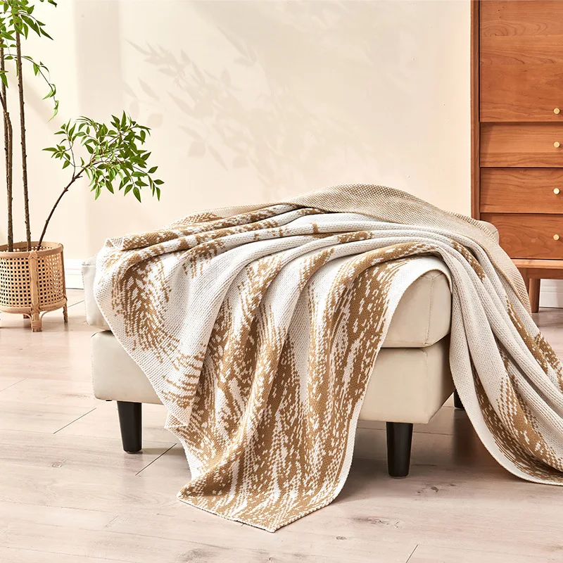 Factory Wholesale Acrylic Wheat Ear Knitted Blanket Stripes Pattern Light Luxury Style Soft Skin-friendly for Foot Bath Office