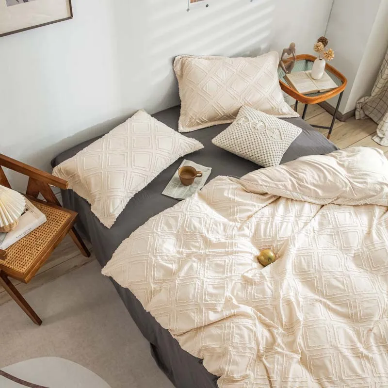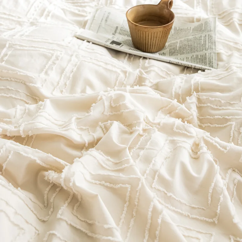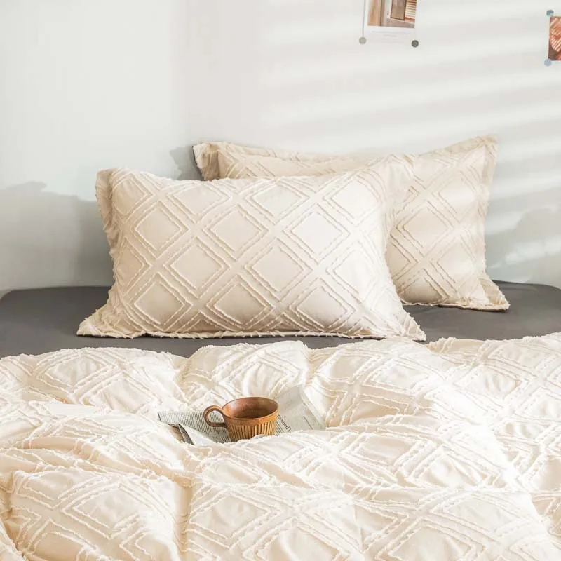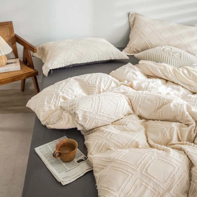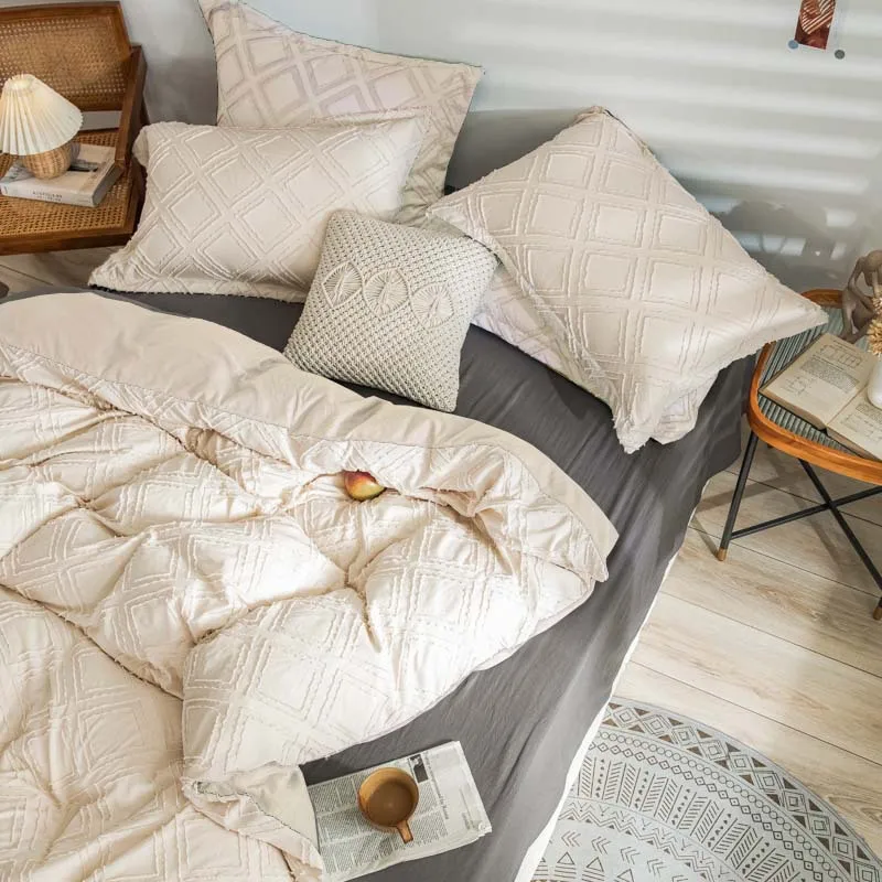 New Bohemian Plush Winter Diamond Grid Textured Tufted Queen Size Comforter Set