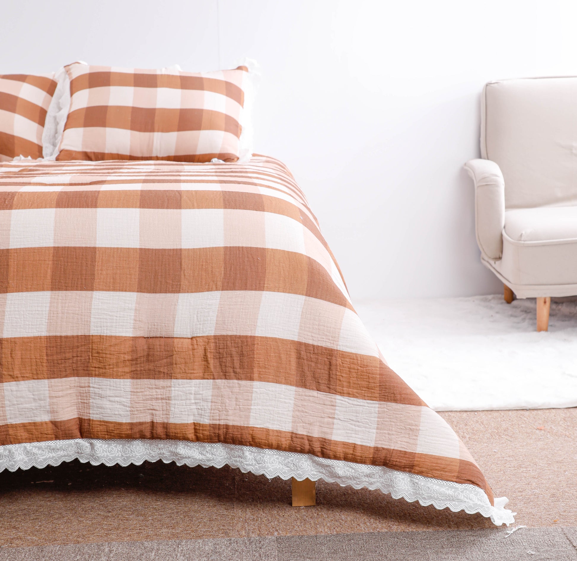 Bulk Vintage Plaid with Lace Trim Comforter Sets |
