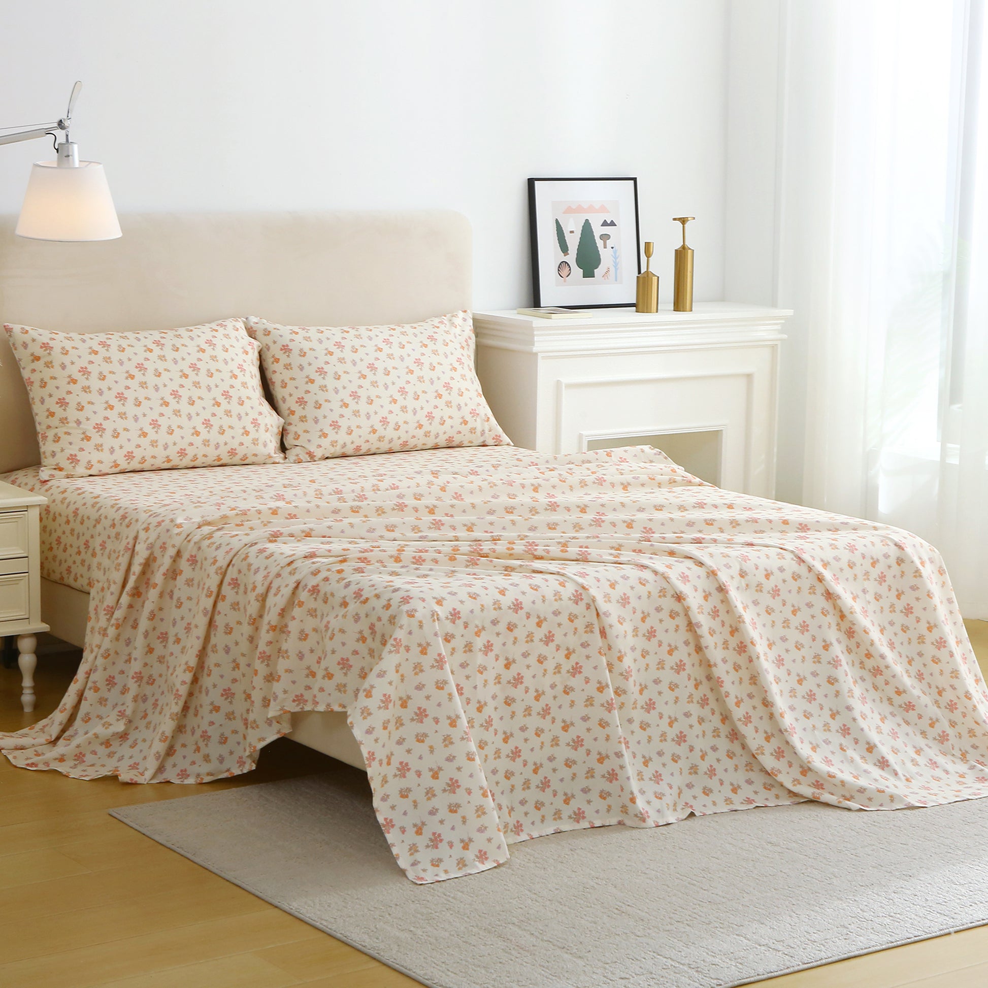 Bulk Yellow Floral Print 4-PC Bedding Set |
