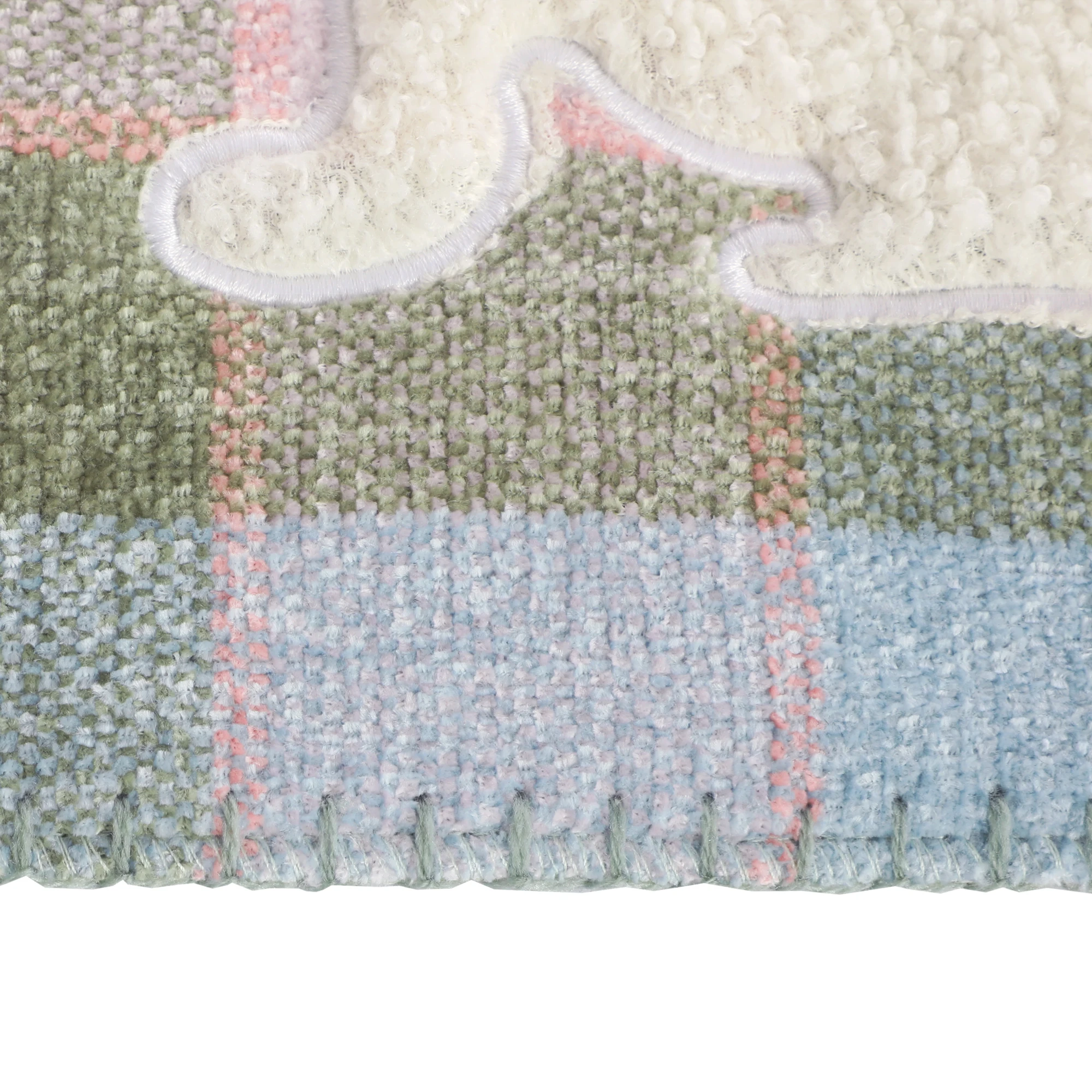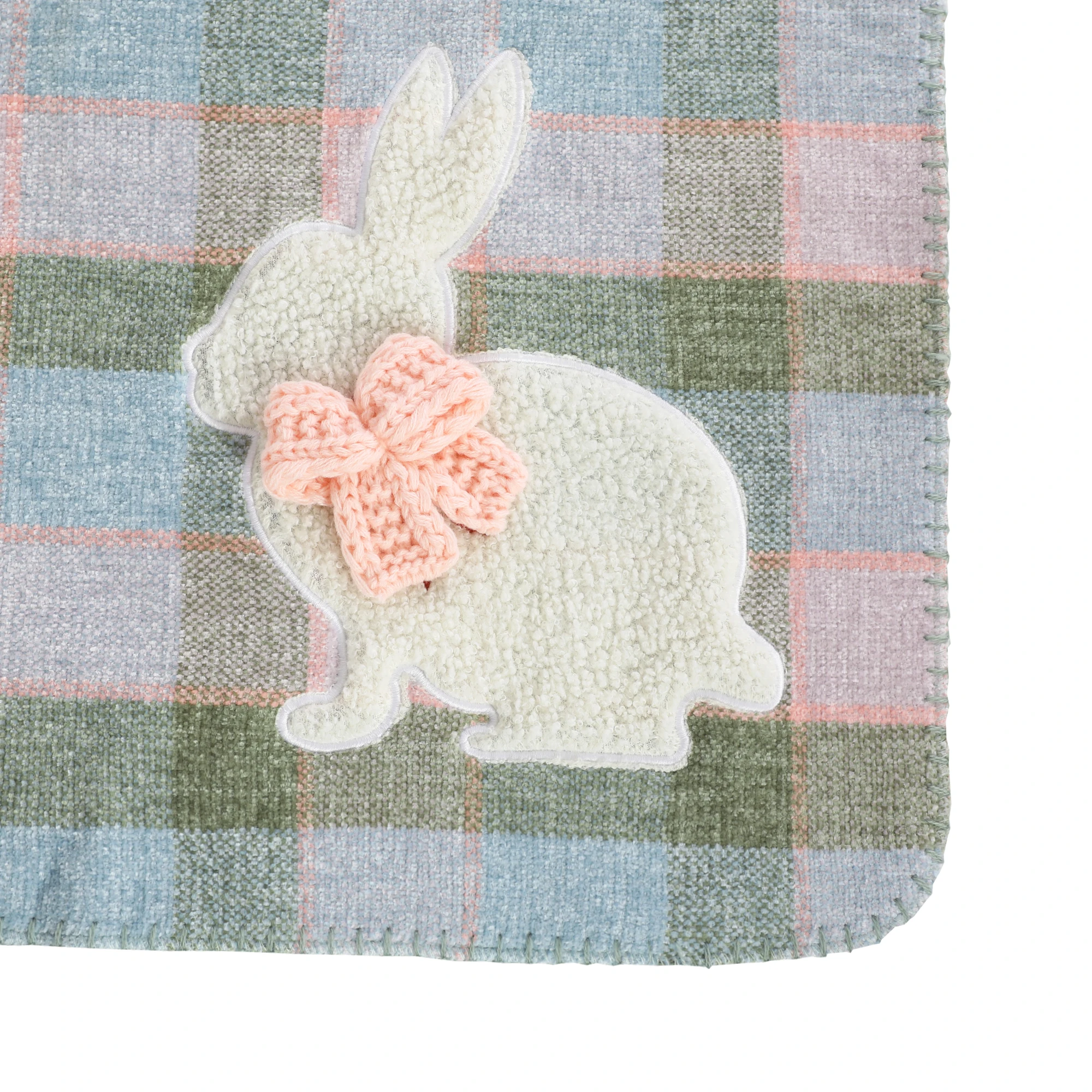 Pătură tricotată din Chenille brodată, cusută cu margini Whipstitch, cu model de personaj desen animat vesel